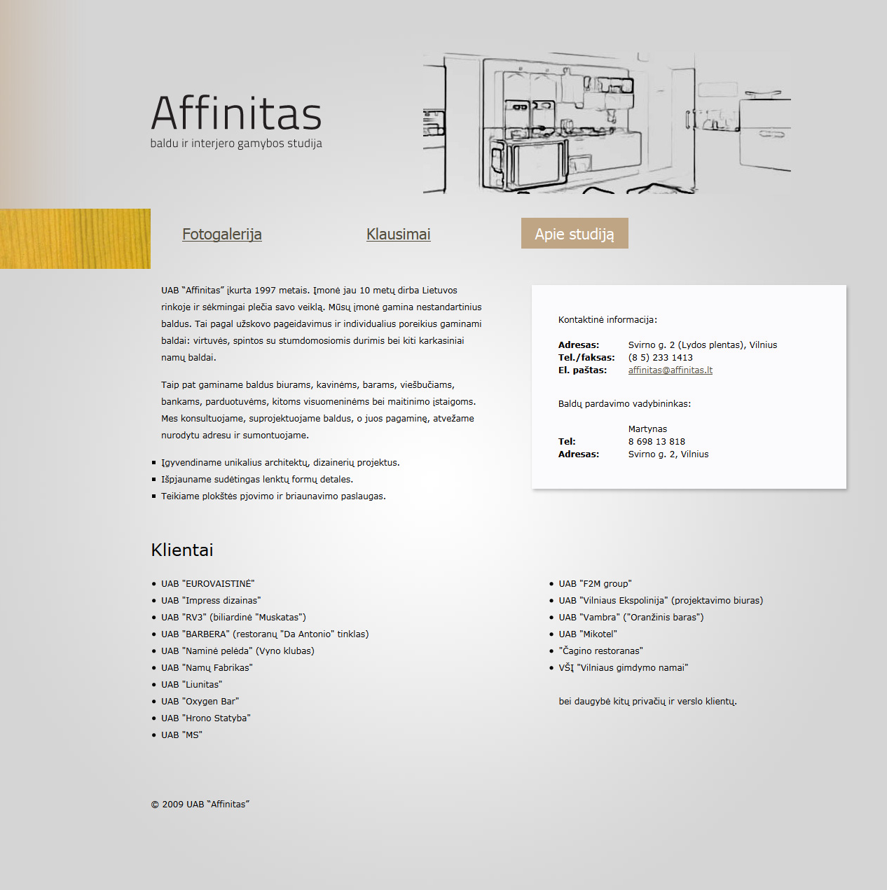 website (www.affinitas.lt) for a furniture and interior manufacturing studio.