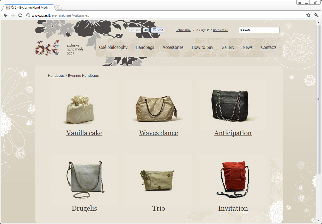 naming, branding, packaging and website (www.ose.lt) for handmade bags designer Jelena Podkopajeva, as part of VDA (Vilnius Academy of Arts) final course work.